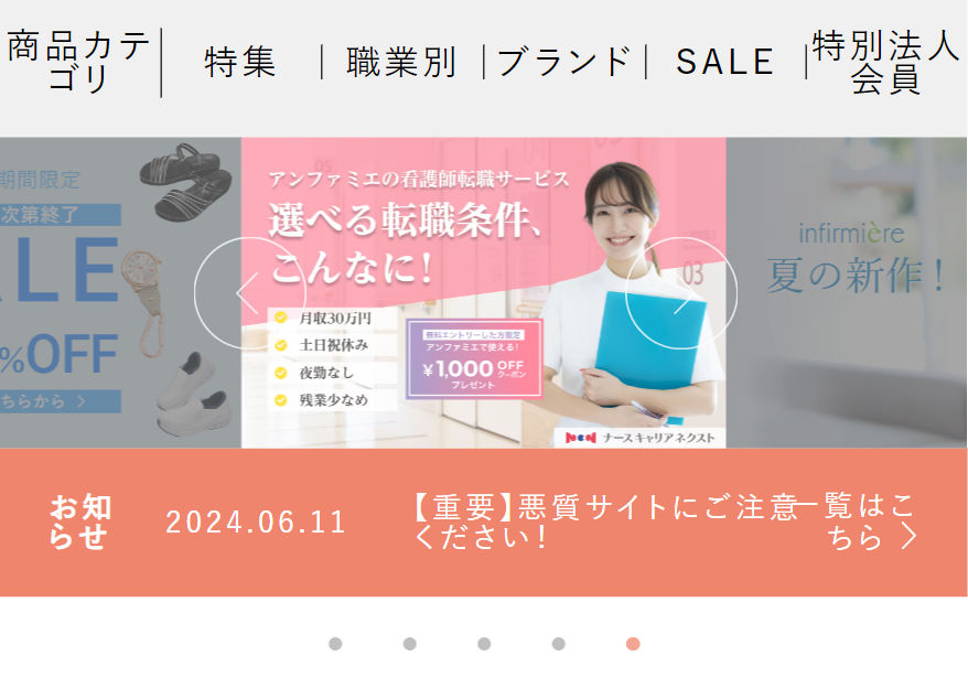 アンファミエは看護師や介護士向け通販国内売り上げNo1のサイトです。