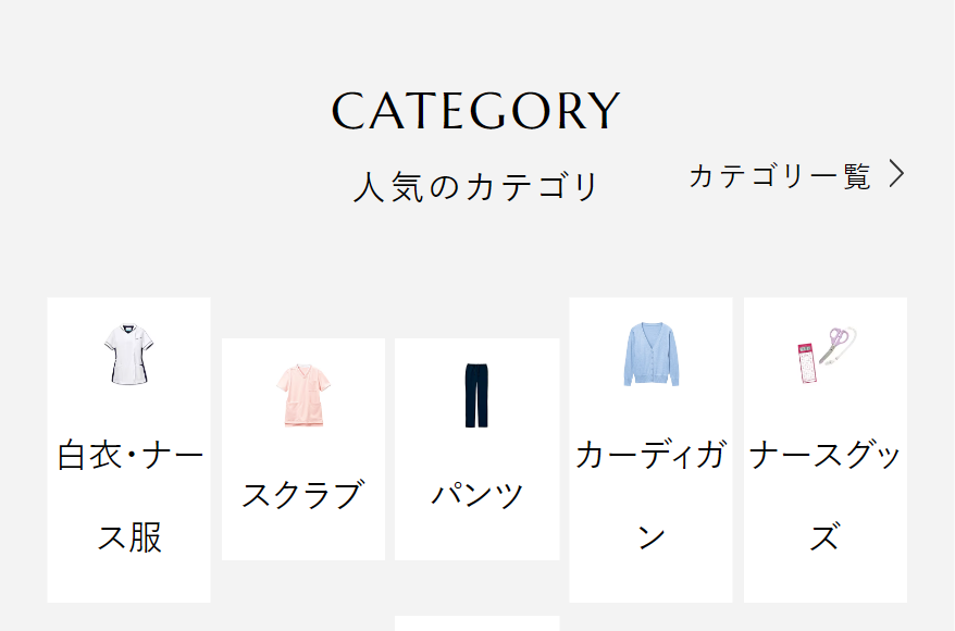 人気のナースシューズや白衣、 医療雑貨、介護用品、プチプラ商品など看護師・介護士向けグッズを数多く取り揃えています。