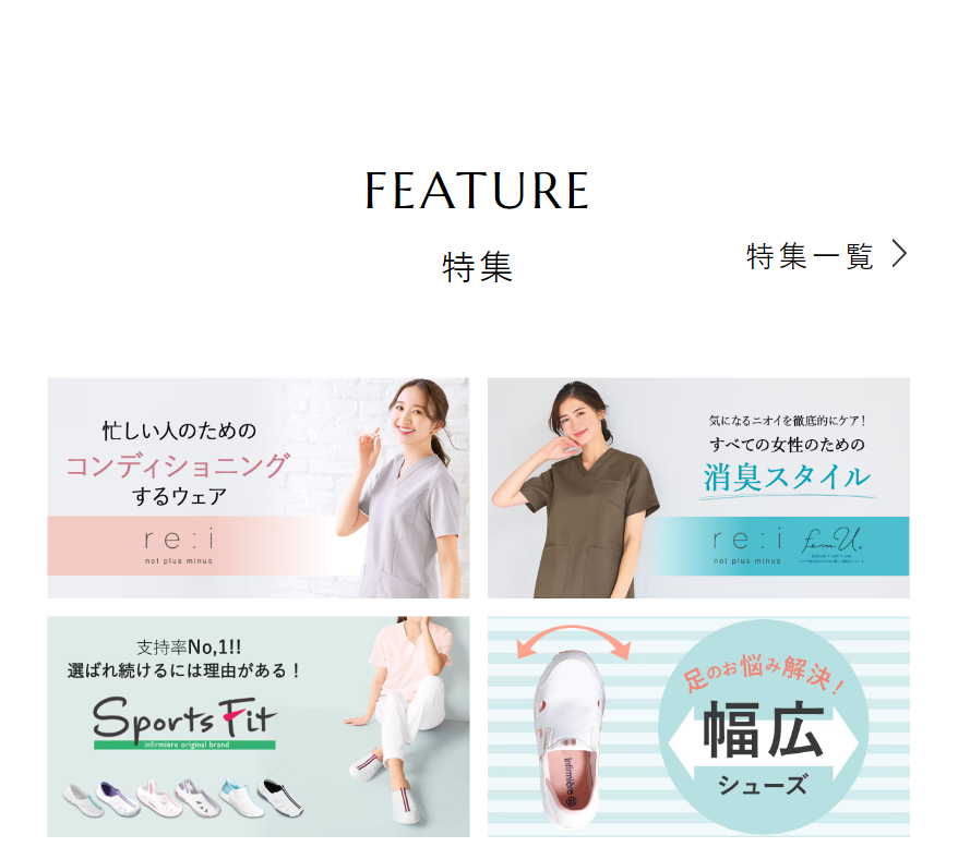 疲れにくく履きやすい優秀ナースシューズや着心地にこだわったナースウェアなど豊富な品揃え。